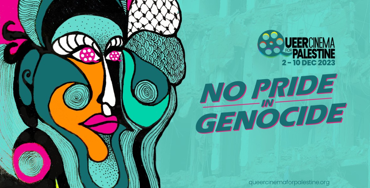 A global event. Queer Cinema for Palestine started as a film festival in 2021 as a solidarity initiative offering artists and arts groups around the world a vibrant space to stand together, using our art to oppose the ongoing violence of Israeli occupation and apartheid against Indigenous Palestinians. In 2023, Queer Cinema for Palestine will host “No Pride in Genocide,” in solidarity with Palestinians in Gaza and across all of historic Palestine and denouncing Israel’s genocidal attacks and ethnic cleansing against millions of Palestinians.