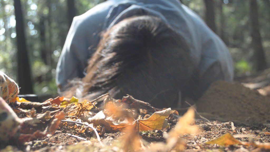 LAND/TRUST is a performance piece between Whess Harman, a member of the Carrier Wit’at nation (federally amalgamated under the Lake Babine Nation by the colonial government), and the ancestral, unceded territory of the Musqueam people. The performance takes place in what is now known as Pacific Spirit Regional Park, a park established in 1989 as a natural forest preserve. Originally envisioned as a performance on the artist’s home territories, the work evolved into a hopeful request for the land to help carry grief across the distance between the home made, and the home that is difficult to return to.