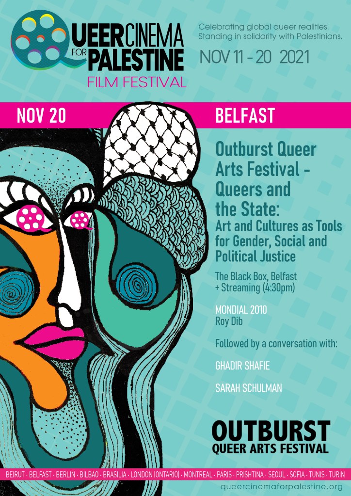 We warmly welcome very special guests Ghadir al Shafie and Sarah Schulman, who will be in conversation after a screening of Roy Dib’s award winning queer short, Mondial 2010.