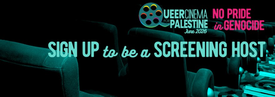 OPEN CALL: Queer Cinema for Palestine is looking for screening hosts around the world to co-present this year’s QCP “No Pride in Genocide” event during the month of June 2026. Last year’s edition saw more than 110 screenings in 35 countries around the world. Join us to make this year’s even bigger.